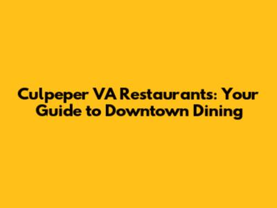 Culpeper VA Restaurants: Your Guide To Downtown Dining