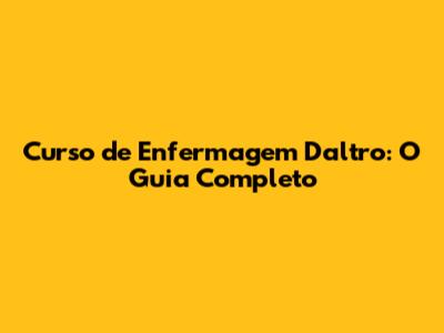 Curso De Enfermagem Daltro: O Guia Completo