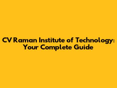 CV Raman Institute Of Technology: Your Complete Guide