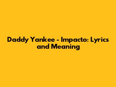 Daddy Yankee - Impacto: Lyrics And Meaning