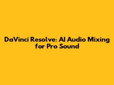 DaVinci Resolve: AI Audio Mixing For Pro Sound