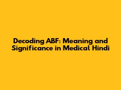 Decoding ABF: Meaning And Significance In Medical Hindi