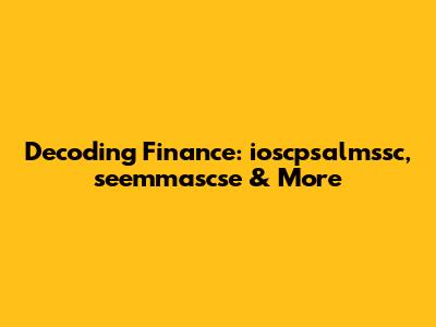 Decoding Finance: Ioscpsalmssc, Seemmascse & More