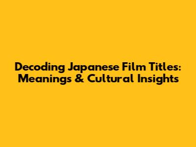 Decoding Japanese Film Titles: Meanings & Cultural Insights