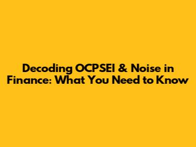 Decoding OCPSEI & Noise In Finance: What You Need To Know
