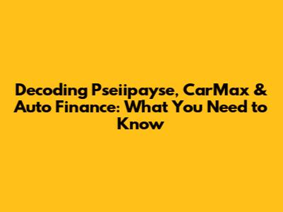 Decoding Pseiipayse, CarMax & Auto Finance: What You Need To Know