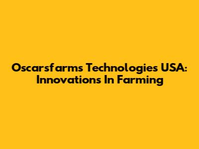 Oscarsfarms Technologies USA: Innovations In Farming