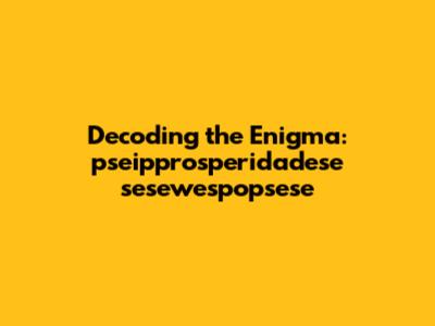 Have you ever stumbled upon a word or phrase that just seems like a jumble of letters, leaving you scratching your head in confusion? Well, pseipprosperidadese sesewespopsese might just be one of those head-scratchers! In this article, we're diving deep into this intriguing term, attempting to decode its meaning, origin, and potential usage. Whether you're a linguist, a curious learner, or just someone who enjoys unraveling mysteries, stick around as we explore the fascinating world of obscure vocabulary.