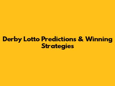 Derby Lotto Predictions & Winning Strategies