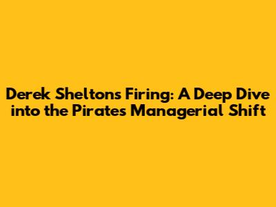 Derek Shelton's Firing: A Deep Dive Into The Pirates' Managerial Shift