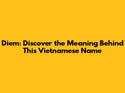 Diem: Discover The Meaning Behind This Vietnamese Name