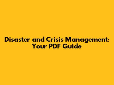 Disaster & Crisis Management: Your PDF Guide