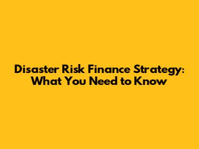 Disaster Risk Finance Strategy: What You Need To Know