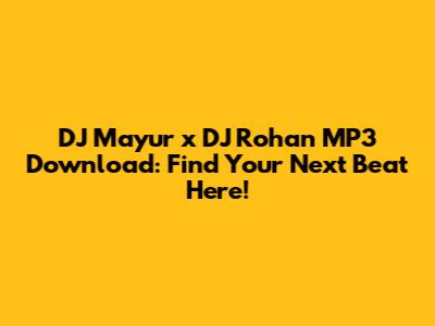 DJ Mayur X DJ Rohan MP3: Find Your Next Beat Here!
