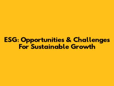 ESG: Opportunities & Challenges For Sustainable Growth