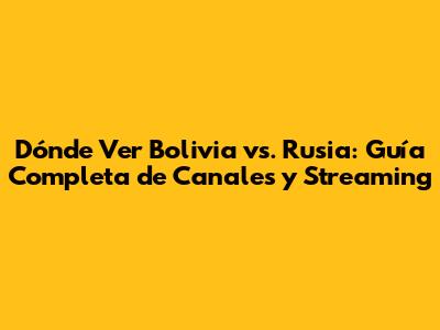 Dónde Ver Bolivia Vs. Rusia: Guía Completa De Canales Y Streaming