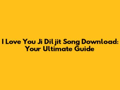 Download I Love You Ji By Diljit: A Guide