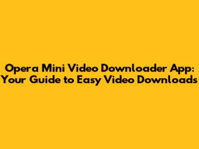 How to Download Videos Using Opera Mini: A Step-by-Step Guide