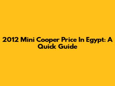 2012 Mini Cooper Price In Egypt: A Quick Guide