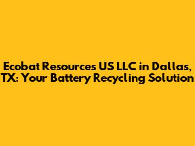 Hey guys! Are you looking for information about Ecobat Resources US LLC in Dallas, TX? Or maybe you're trying to figure out the best way to handle your battery recycling needs? Well, you've come to the right place! This article dives deep into Ecobat's operations in Dallas, exploring their services, what makes them tick, and why they're a key player in the battery recycling world. So, let's jump in and get the lowdown on Ecobat!