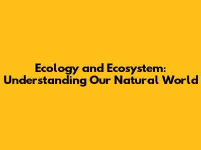 Ecology And Ecosystem: Understanding Our Natural World