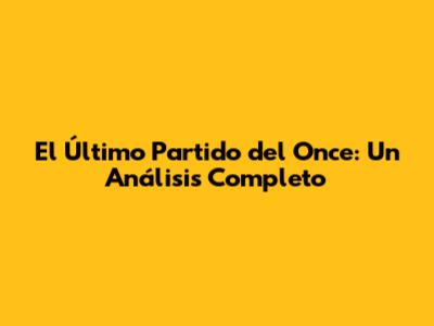 El Último Partido Del Once: Un Análisis Completo
