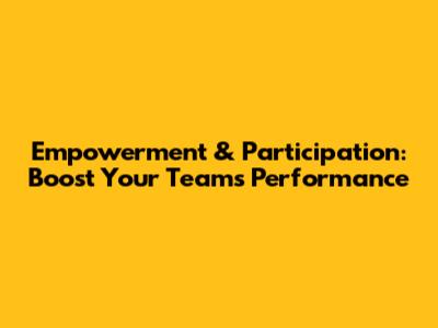 Empowerment & Participation: Boost Your Team's Performance