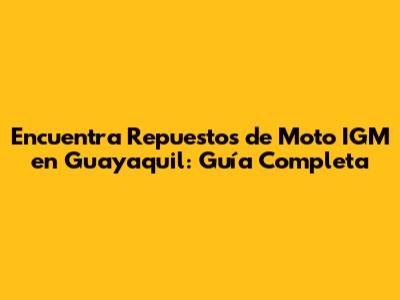 ¿Dónde Comprar Repuestos de Motos IGM en Guayaquil?