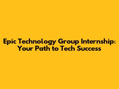 Epic Technology Group Internship: Your Path To Tech Success