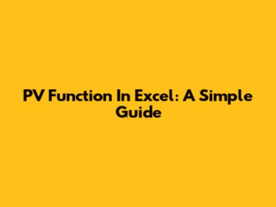 PV Function In Excel: A Simple Guide