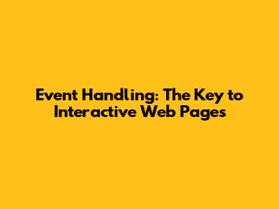 Event Handling: The Key To Interactive Web Pages