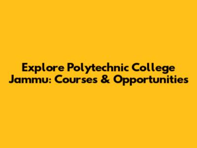 Explore Polytechnic College Jammu: Courses & Opportunities