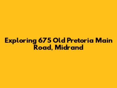 Hey guys! Let's dive into the world of 675 Old Pretoria Main Road in Midrand! This location is a pretty significant spot, and we're going to explore it from every angle. We'll cover everything from what you can find there to why it's a key address in the bustling Midrand area. So, buckle up, and let's get started on this exciting journey! Midrand, as you probably know, is a major business and residential hub, and knowing the ins and outs of places like 675 Old Pretoria Main Road can be super useful. It's all about understanding the landscape, right? This article is going to give you the lowdown, making sure you're well-informed about this key address.