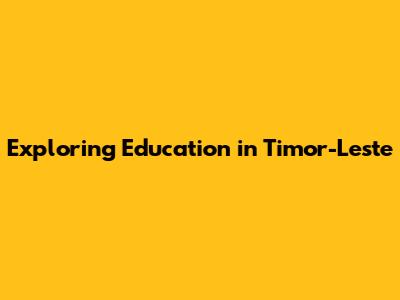 Exploring Education In Timor-Leste