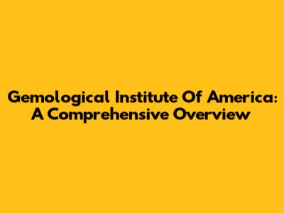 Gemological Institute Of America: A Comprehensive Overview