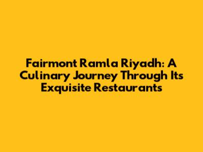 A Deep Dive into Fairmont Ramla Riyadh Restaurants