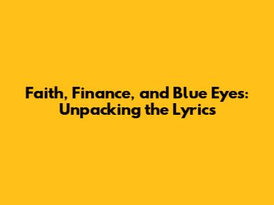 Faith, Finance, And Blue Eyes: Unpacking The Lyrics