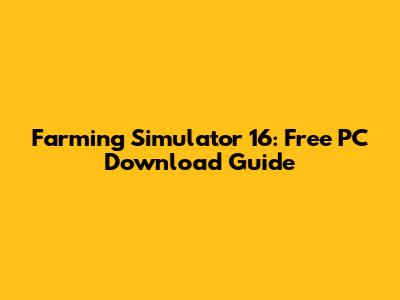 Farming Simulator 16: Free PC Download Guide