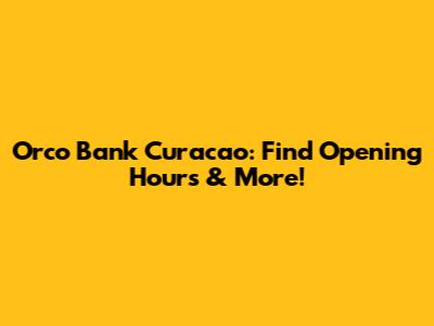 Orco Bank Curacao: Find Opening Hours & More!