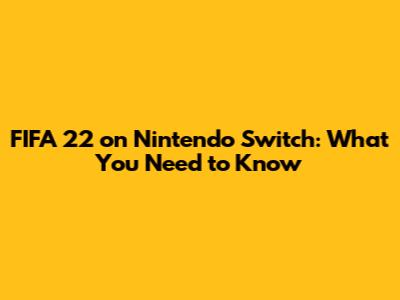 FIFA 22 On Nintendo Switch: What You Need To Know