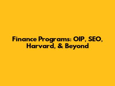 Finance Programs: OIP, SEO, Harvard, & Beyond