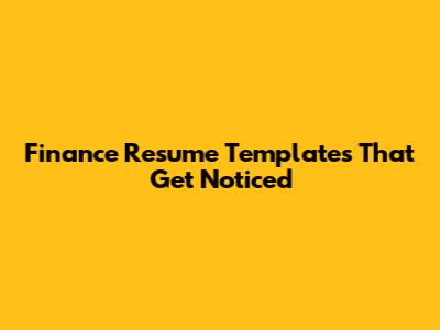 Finance Resume Templates That Get Noticed