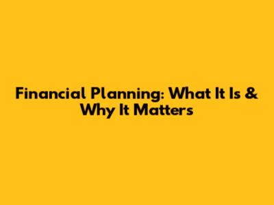 Financial Planning: What It Is & Why It Matters