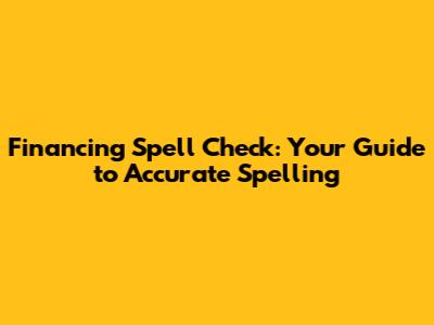 Financing Spell Check: Your Guide To Accurate Spelling