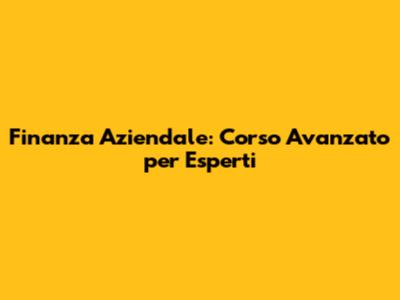 Finanza Aziendale: Corso Avanzato Per Esperti