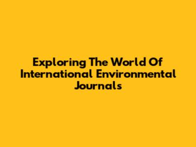 Exploring The World Of International Environmental Journals