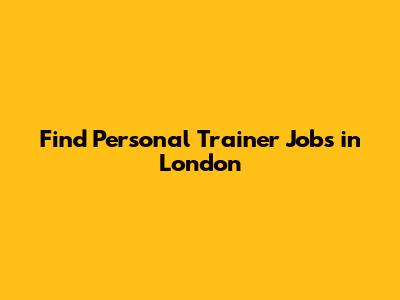 Find Personal Trainer Jobs In London