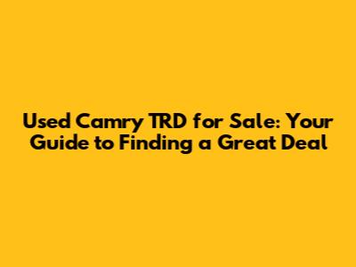 Hey there, car enthusiasts! Looking to snag a used Camry TRD for sale? You've come to the right place. The Camry TRD is a fantastic blend of Toyota's reliability and sporty performance, making it a super desirable ride. Finding one near you doesn't have to be a headache. This guide is designed to walk you through everything you need to know, from where to start your search to what to look out for when you're checking out a potential purchase. We'll cover all the bases, ensuring you're well-equipped to drive away in that sweet, sweet Camry TRD. Let's get started!