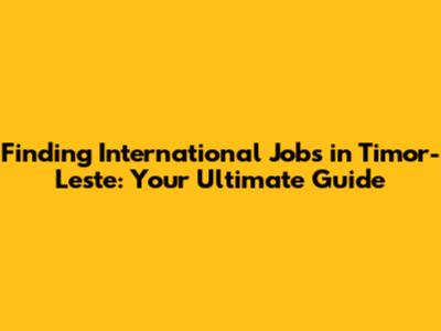 Where to Find International Jobs in Timor-Leste