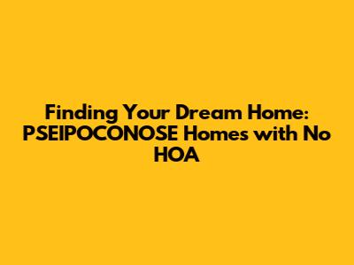 Finding Your Dream Home: PSEIPOCONOSE Homes With No HOA